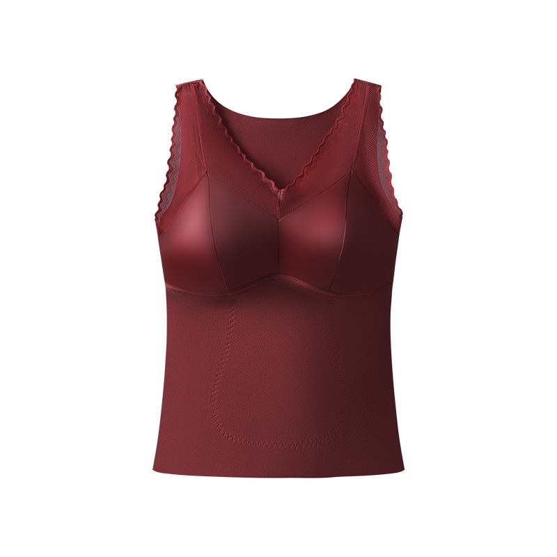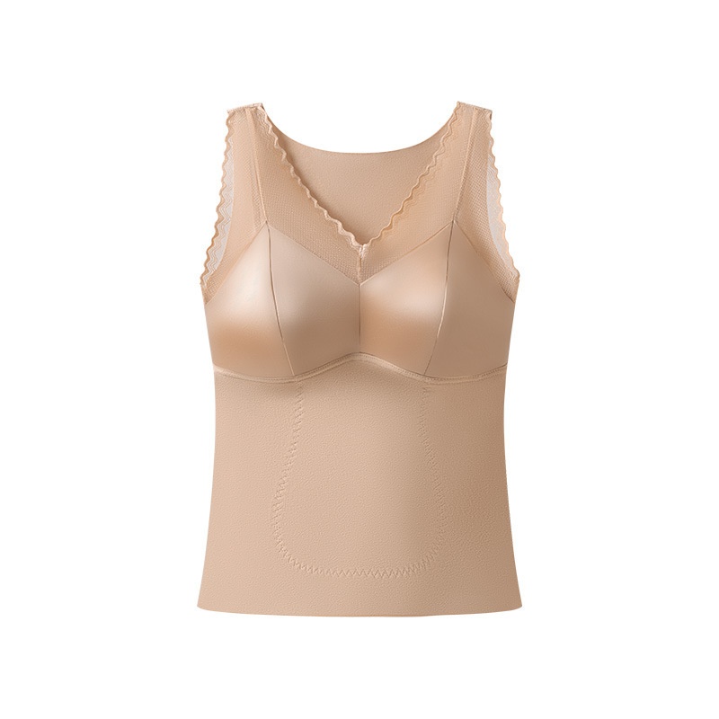 【自帶胸墊,保暖不臃腫!】特調粉底液色系~羊毛絨桑蠶絲貼片緞面保暖打底内衣背心