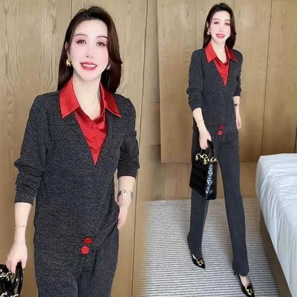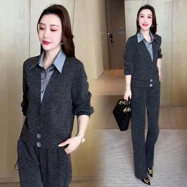 2025新款氣質寬鬆顯瘦假兩件 休閒套裝